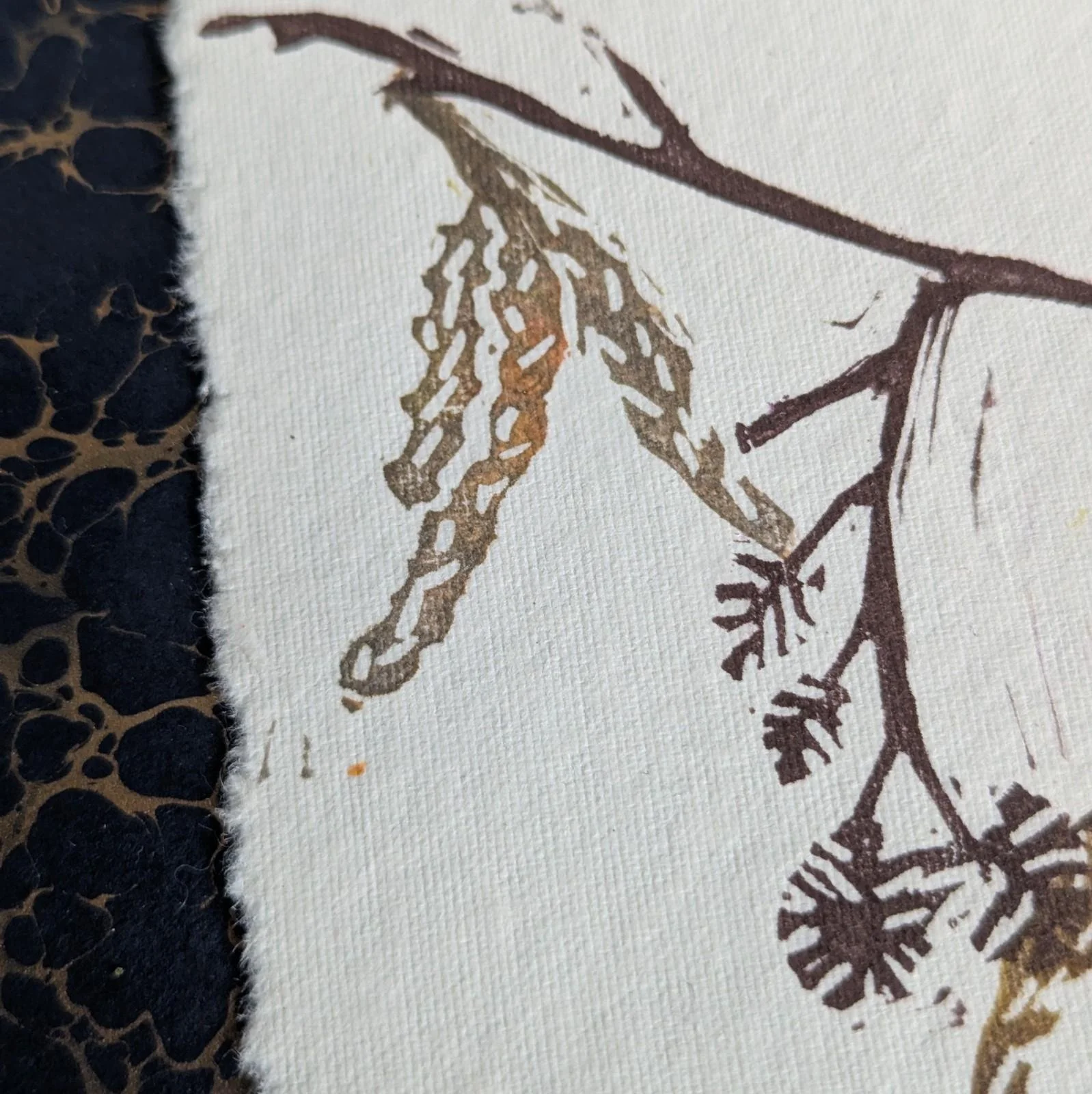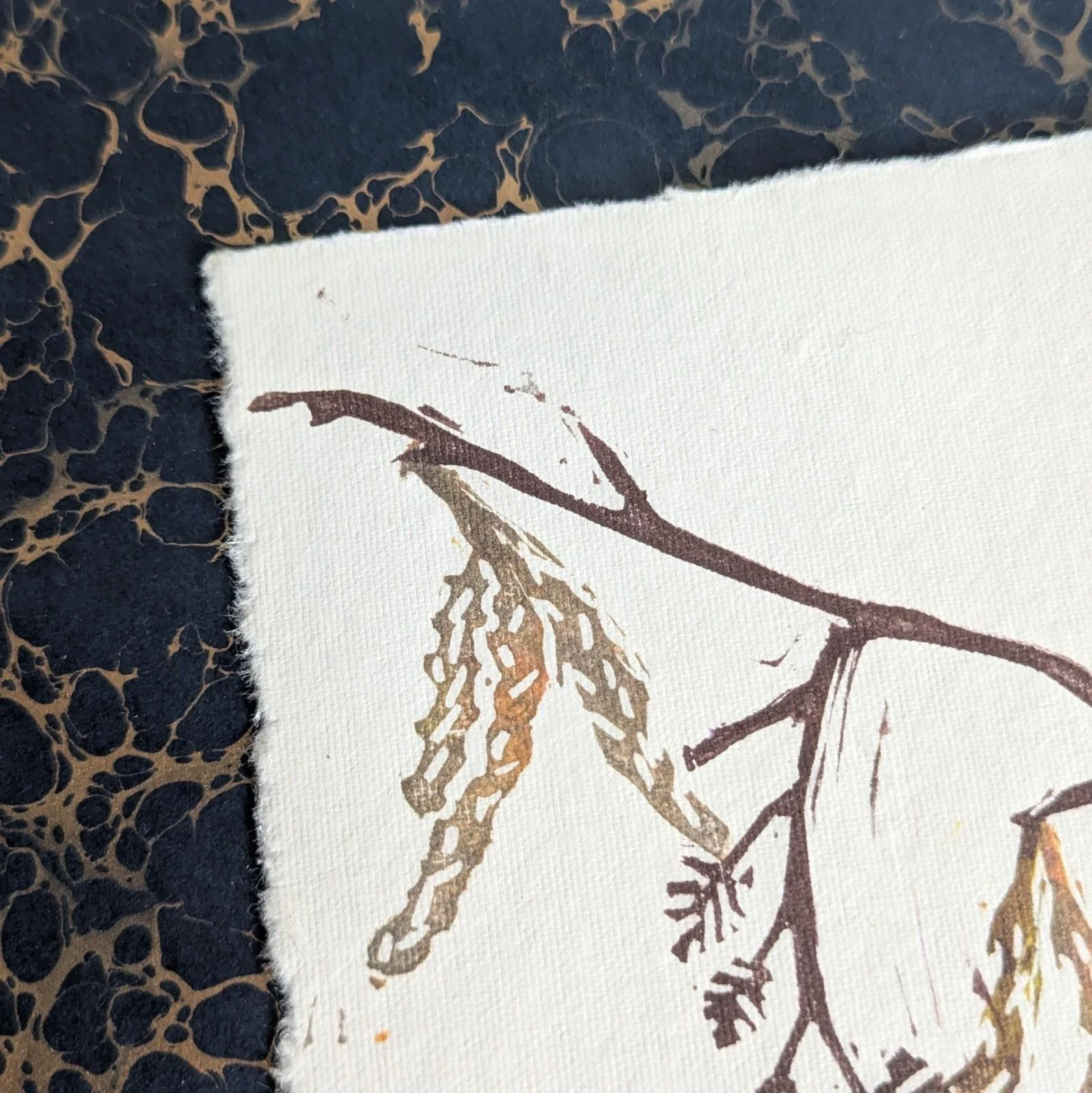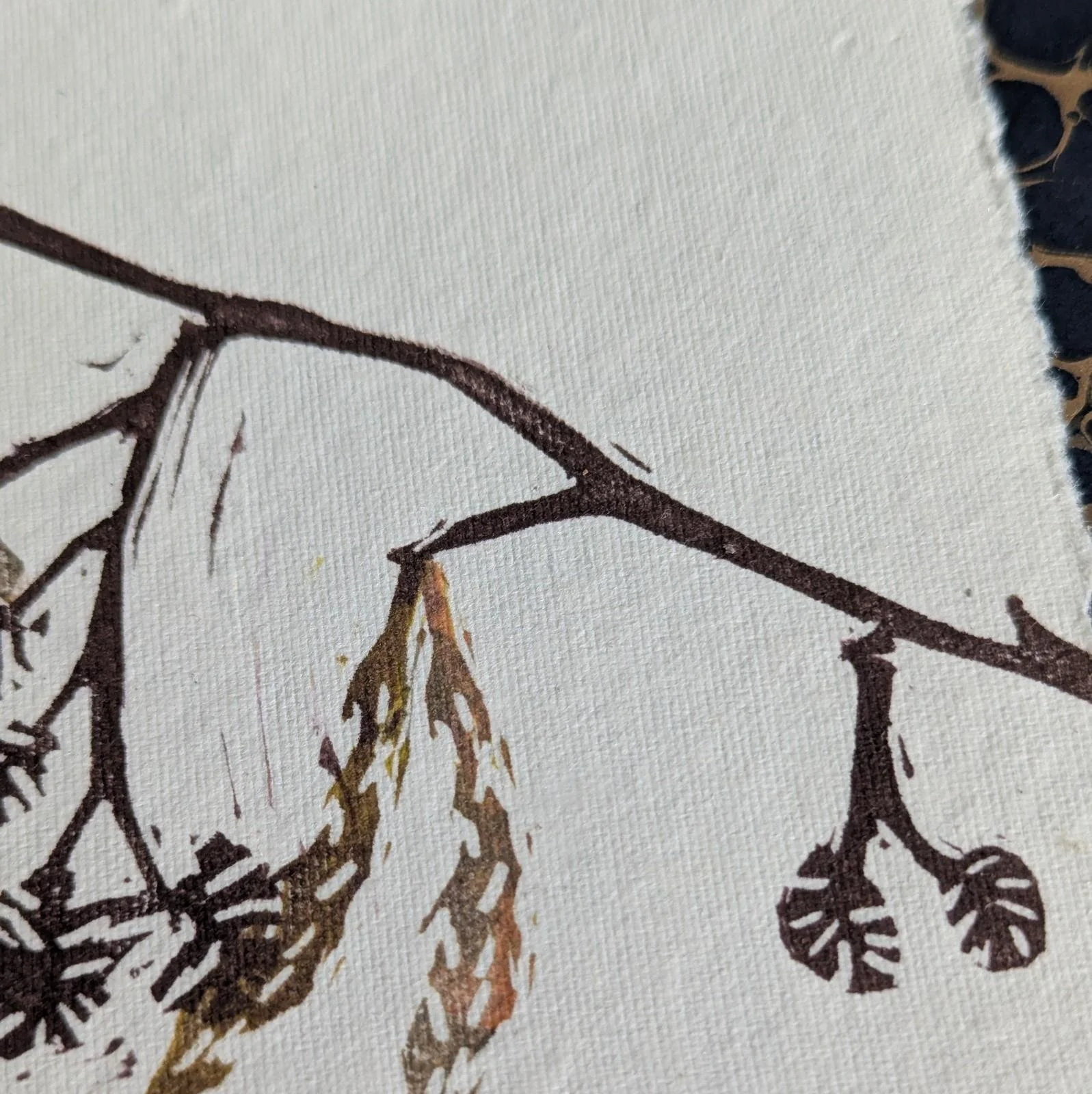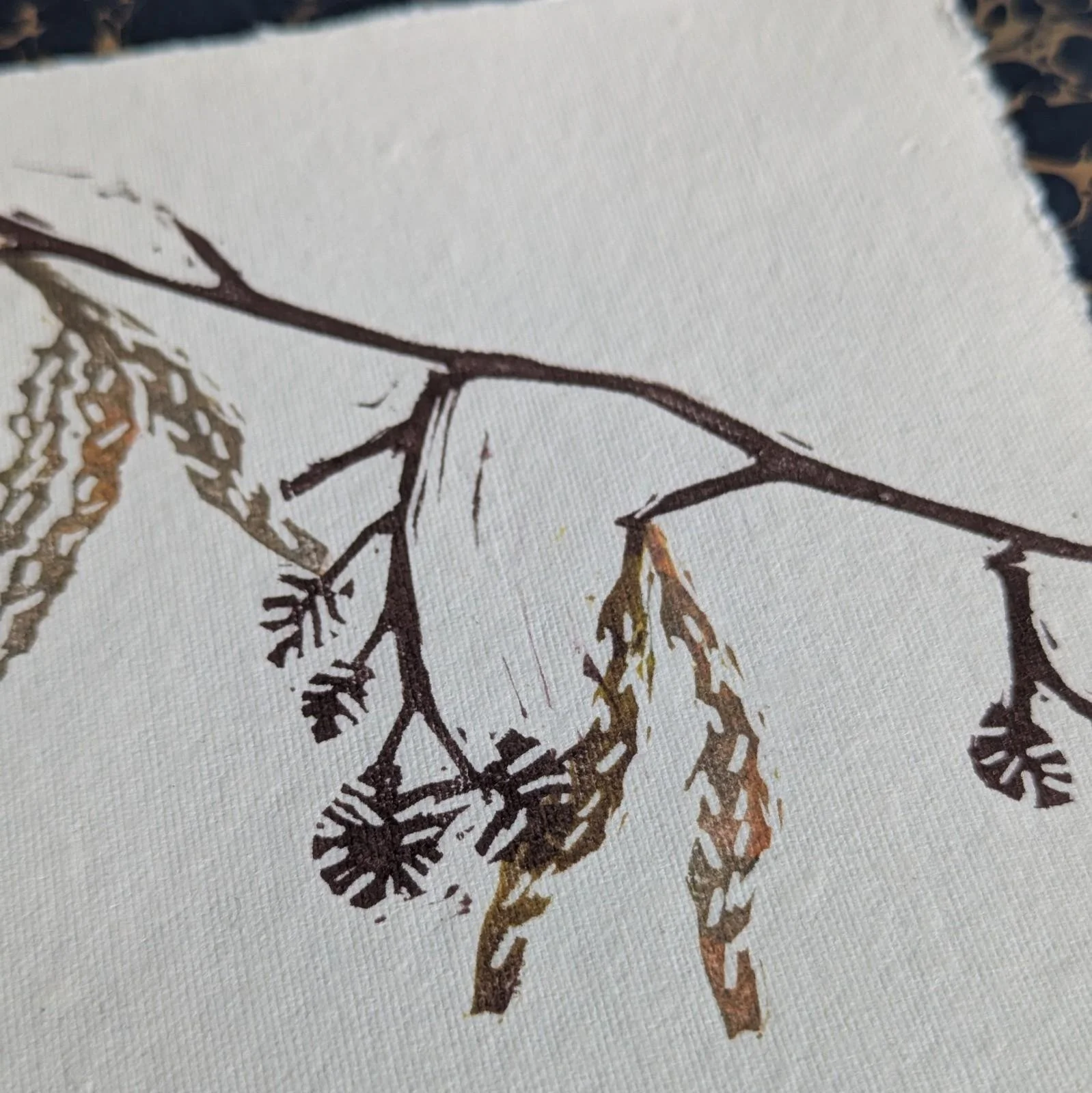 Alder catkins - original lino print - multicolour monoprint | 5x7 inches