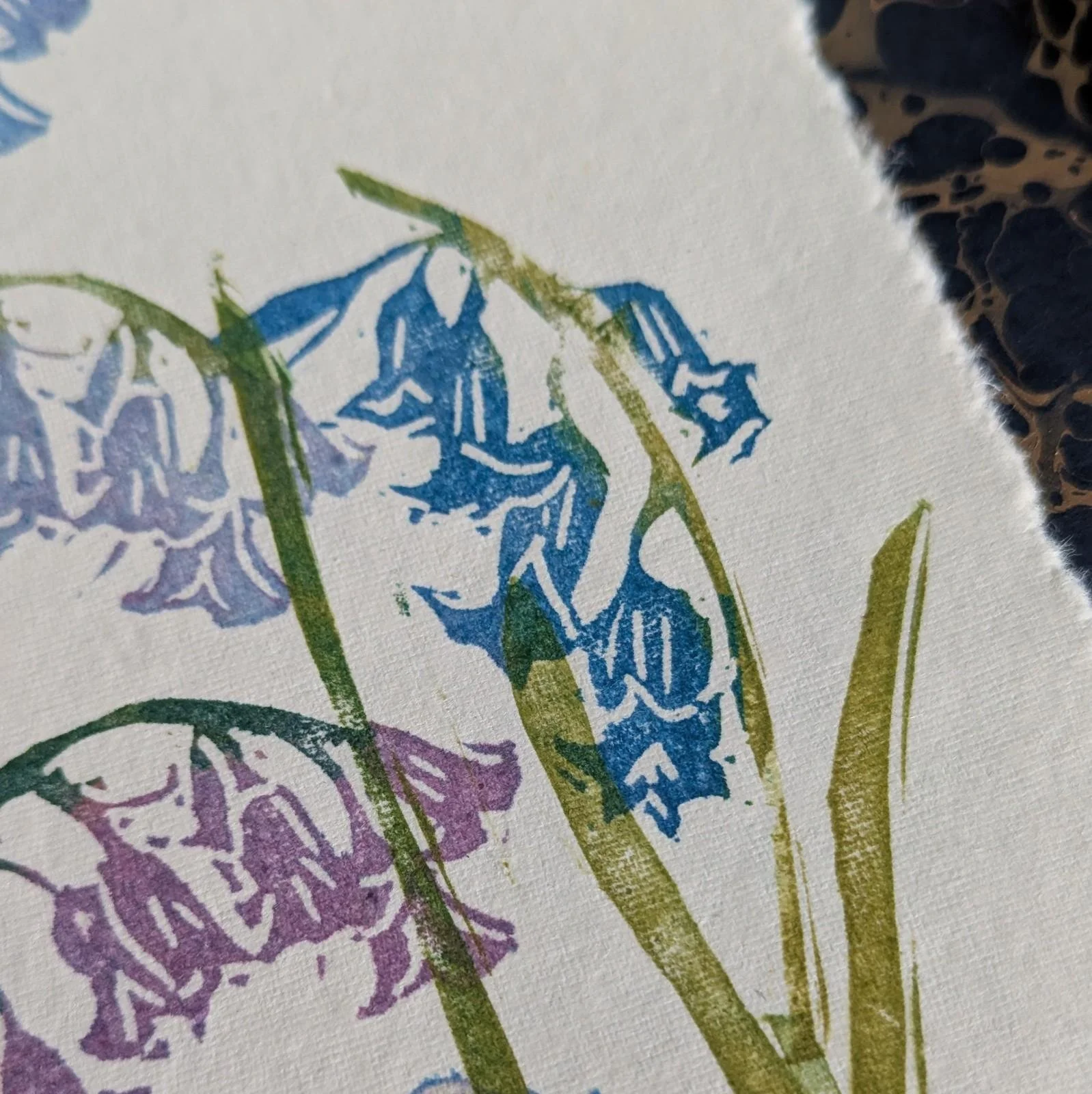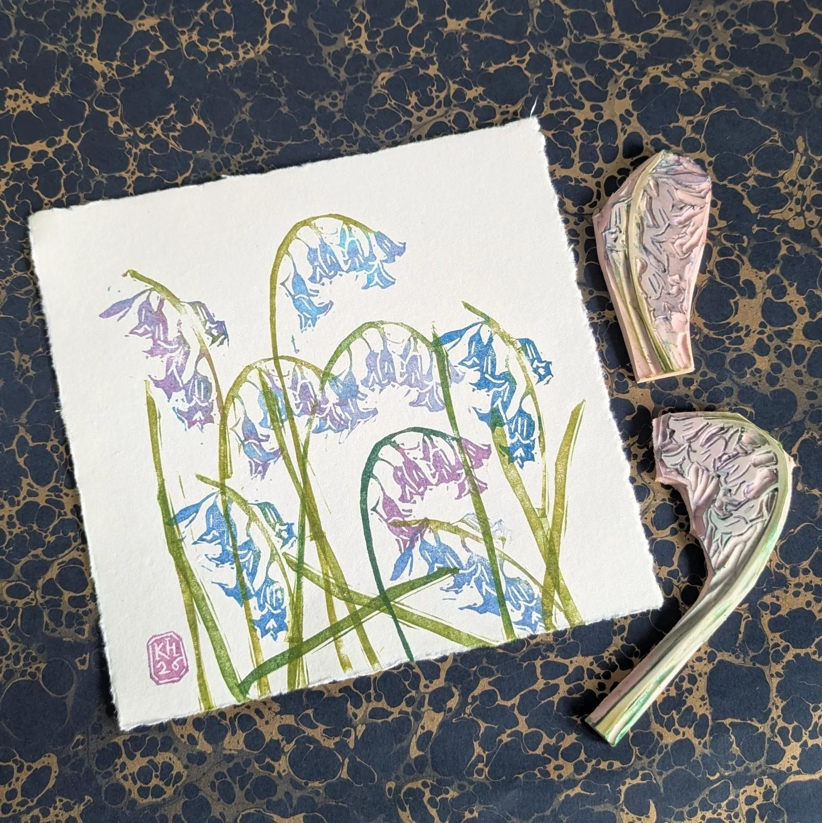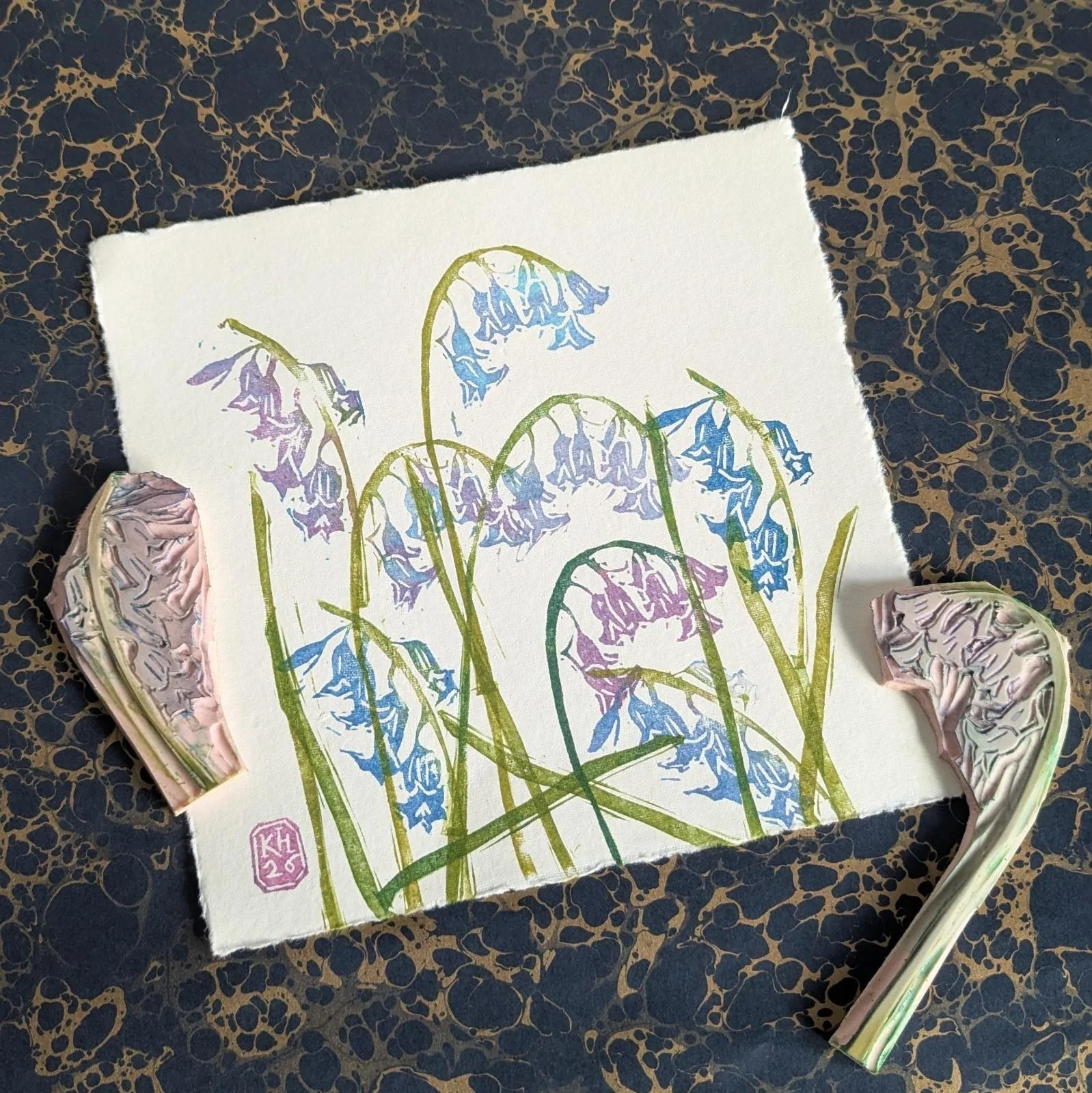 Bluebell Carpet - original lino print - multicolour monoprint
