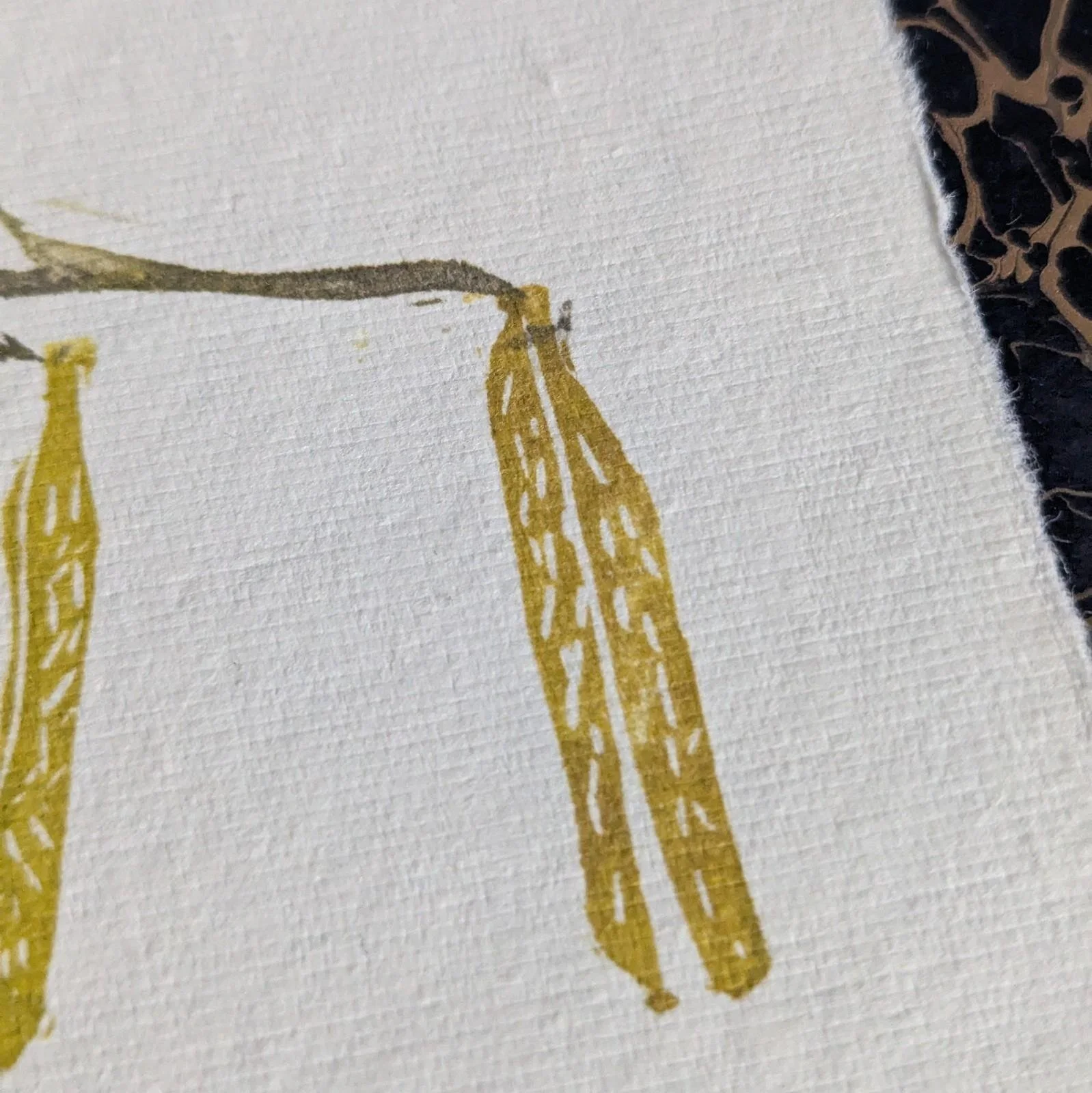 Soft textured paper with a deckled edge.